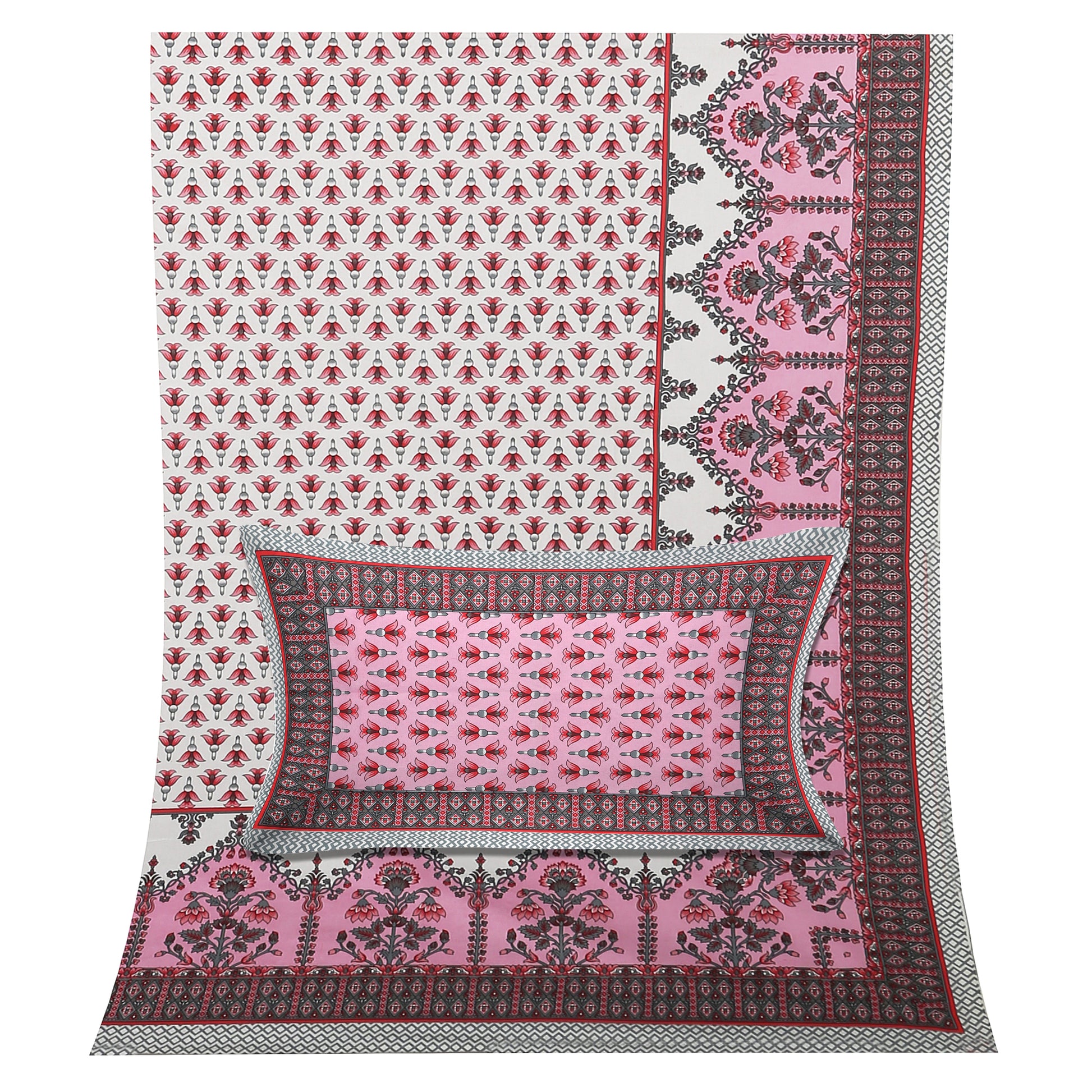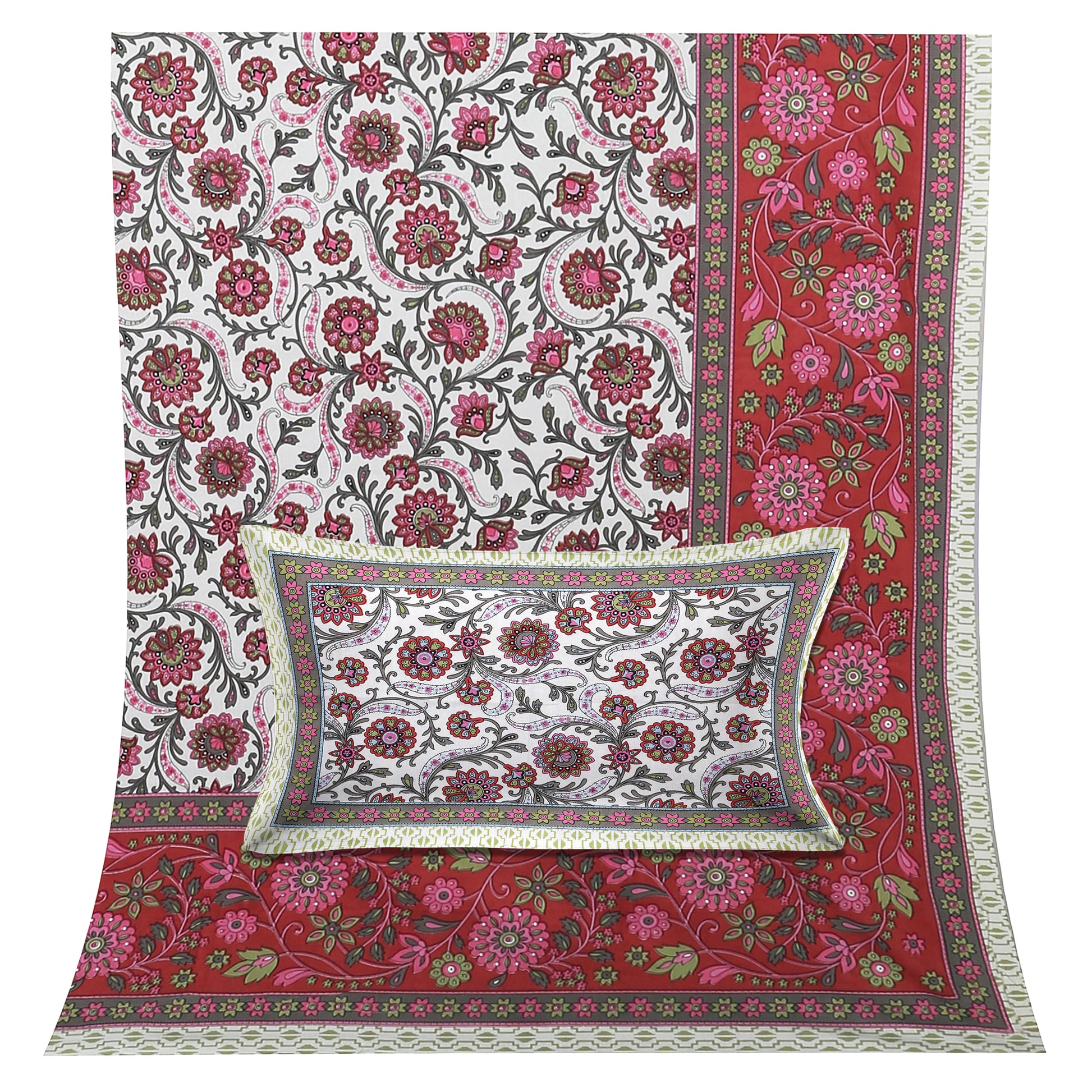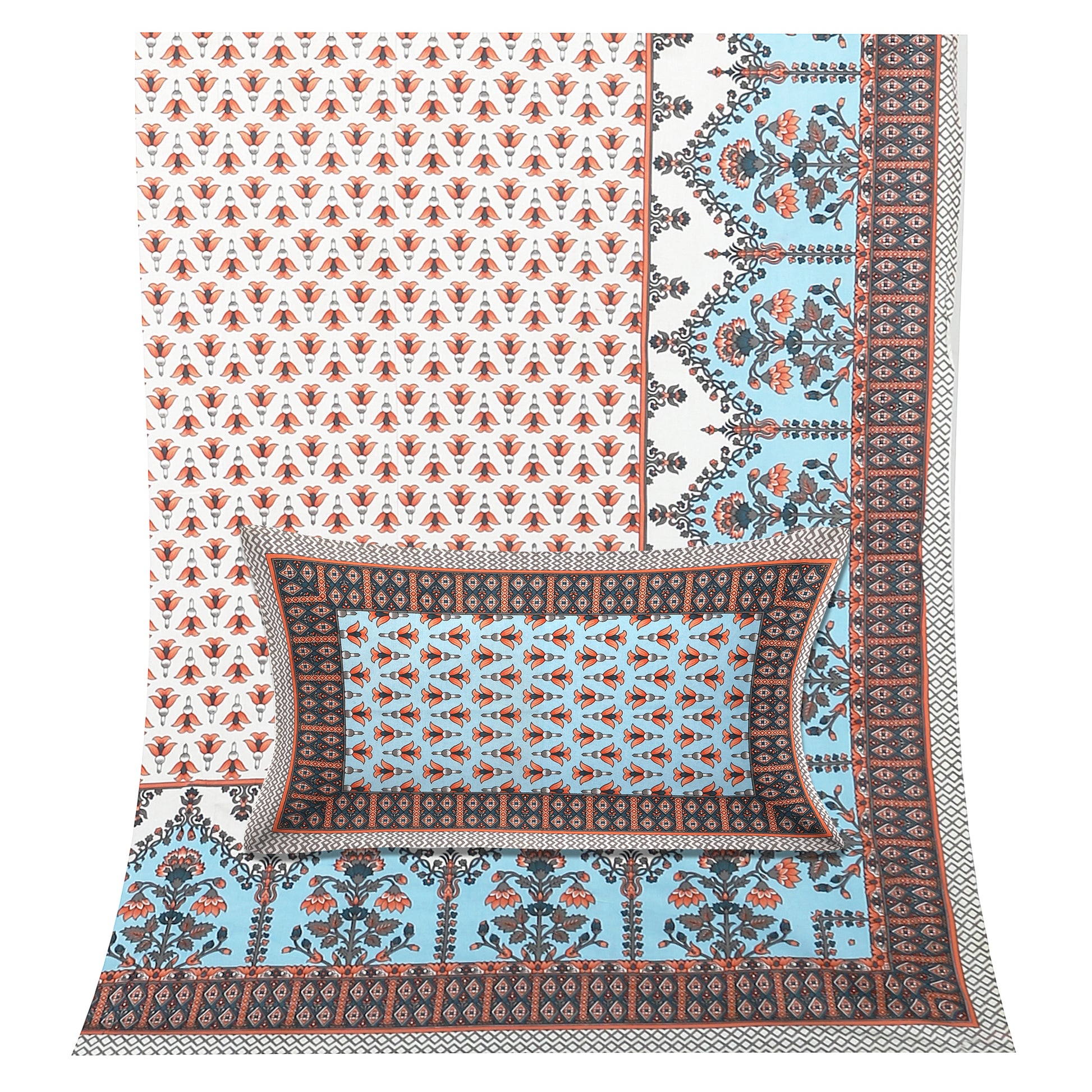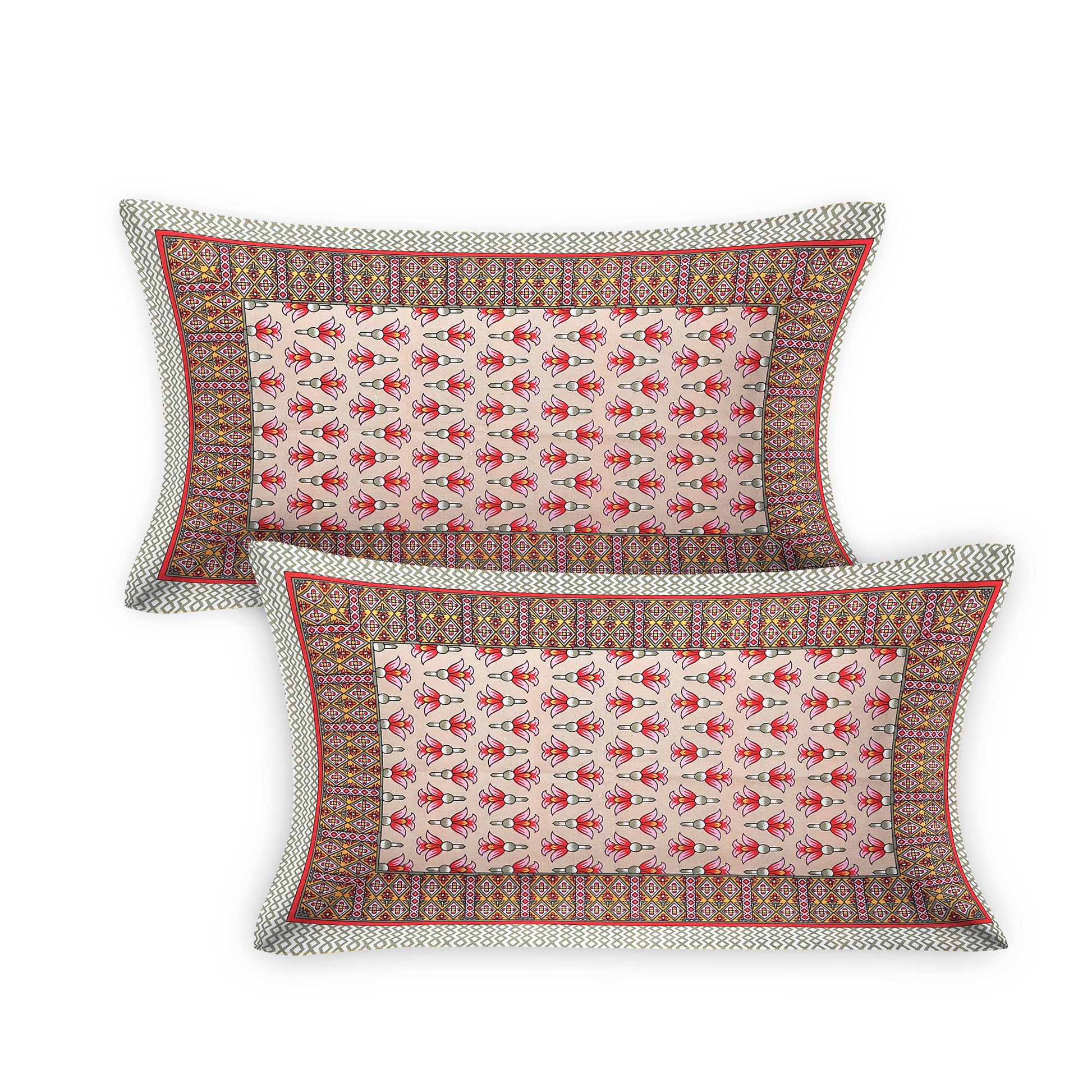 100/108 Utsav 100% Cotton Super King Size Double Bedsheet with 2 Pillow Covers, Festive & Vibrant Design - HLB46