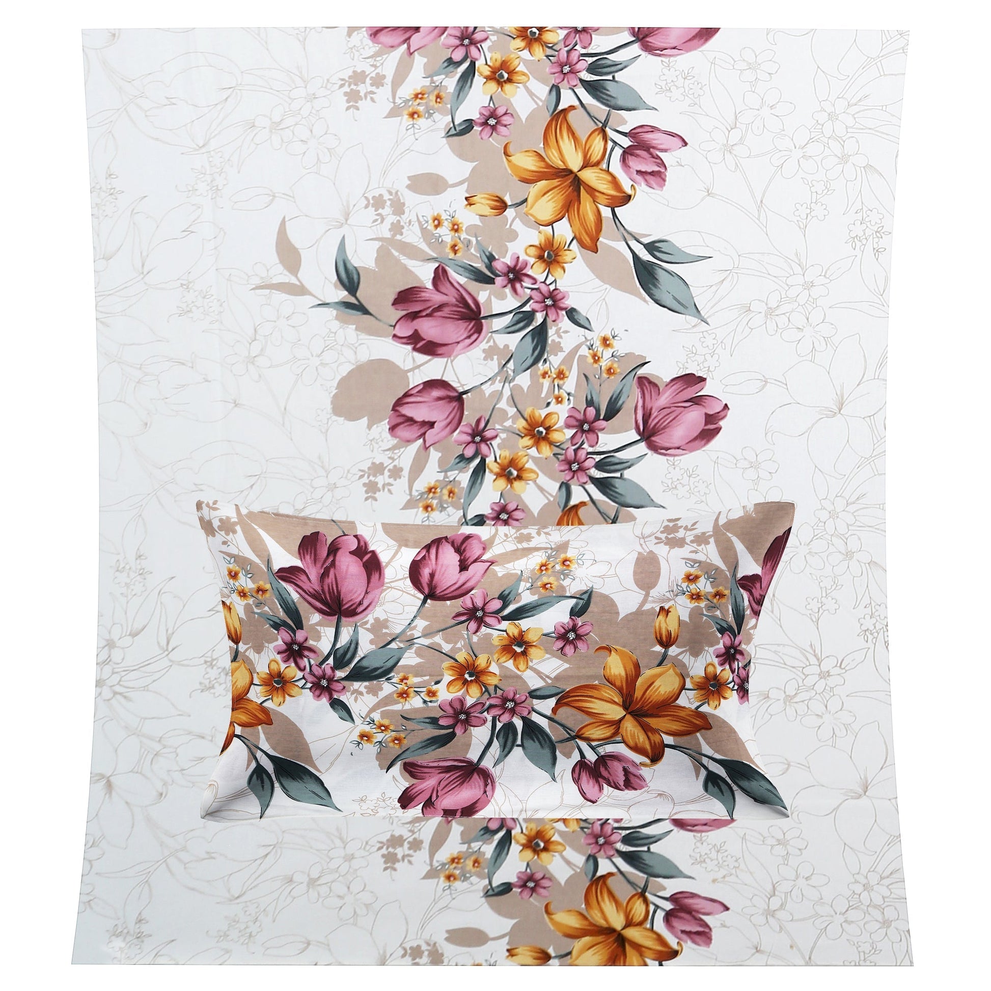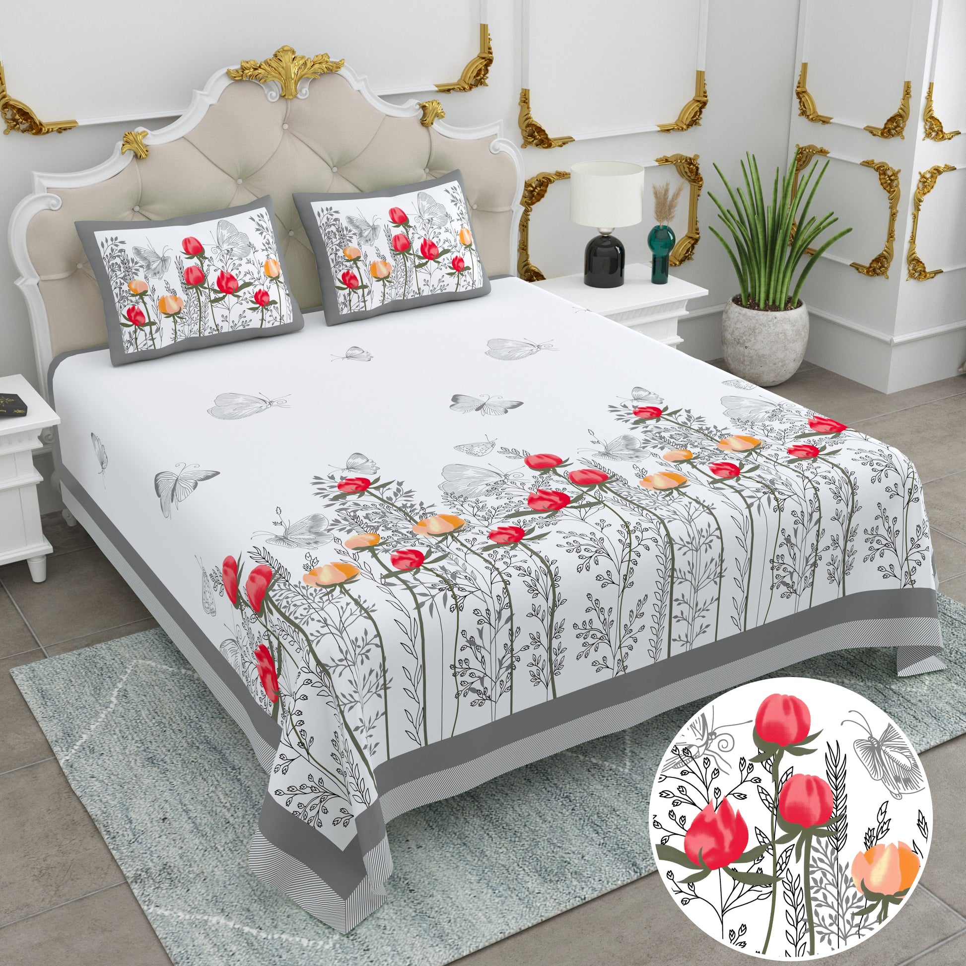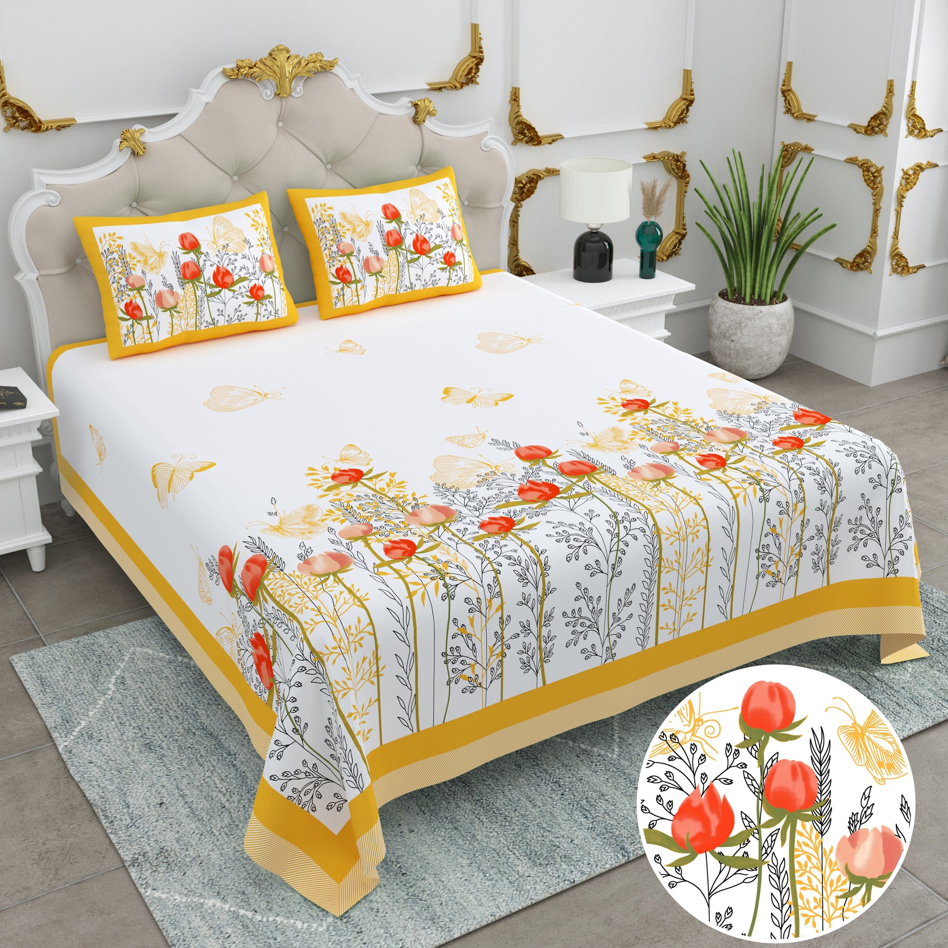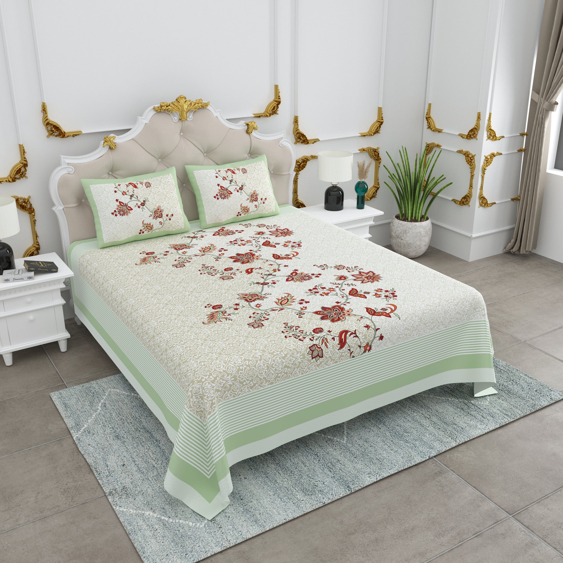 108/108 Basil 100% Cotton Jumbo Size Double Bedsheet with 2 Pillow Covers, Premium Weave & Comfortable Feel - HLB66